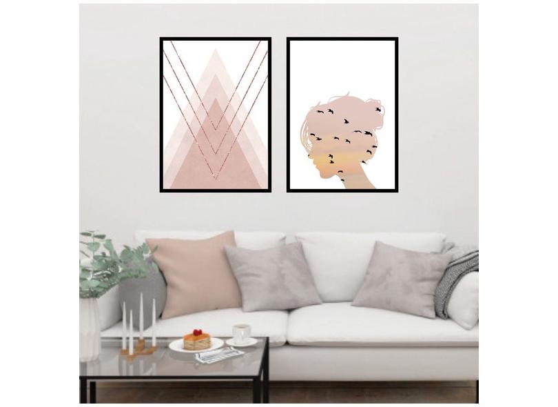 Kit 2 Quadros Decorativos Menina com Pássaros 45x34cm