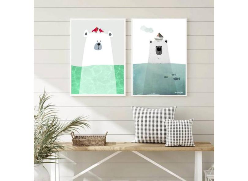 Kit 2 Quadros Decorativos Ursos do Mar 45x34cm