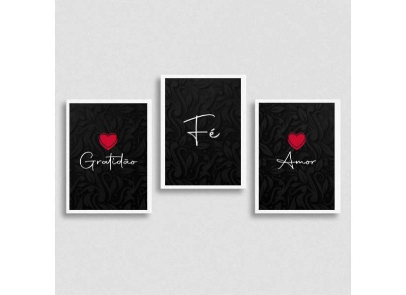 Kit 3 Quadros Amor, Fé, Gratidão