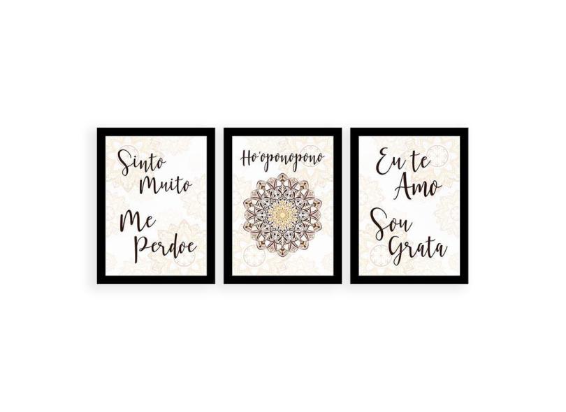 Kit 3 Quadros Decorativos 27x36cm Cada Ho'oponopono Mandala
