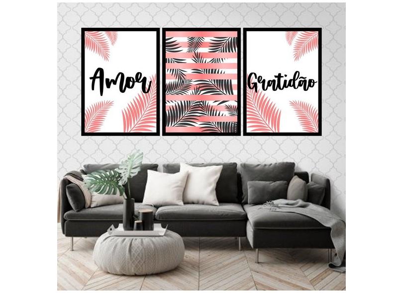 Kit 3 Quadros Decorativos Amor e Gratidão 45x34cm
