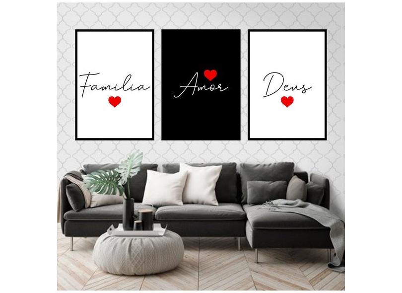 Kit 3 Quadros Decorativos Família, Amor e Deus 45x34cm