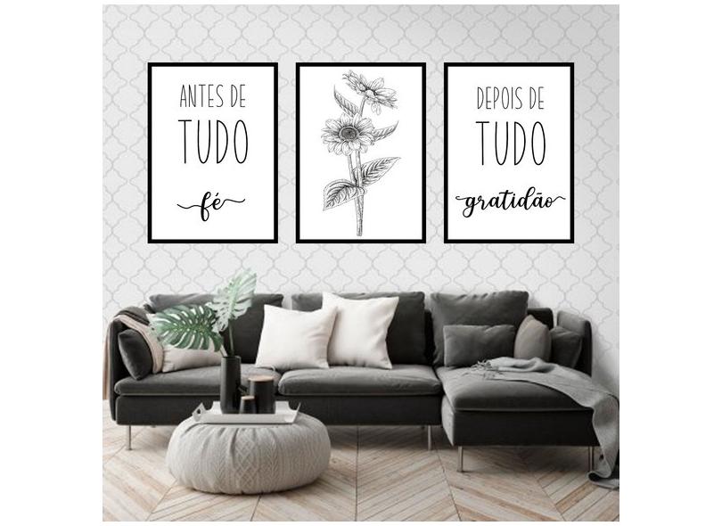Kit 3 Quadros Decorativos Fé e Gratidão Girassol 45x34cm