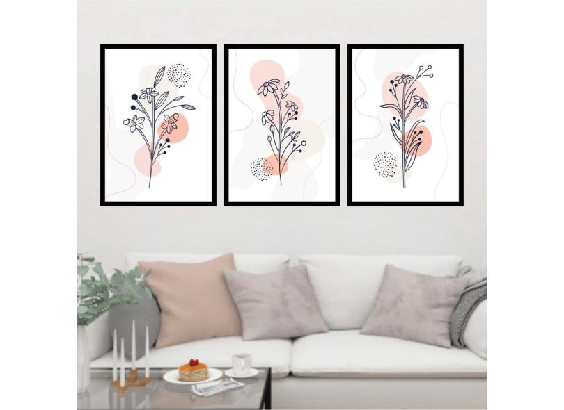 Kit 3 Quadros Decorativos Flores Abstrato 45x34cm