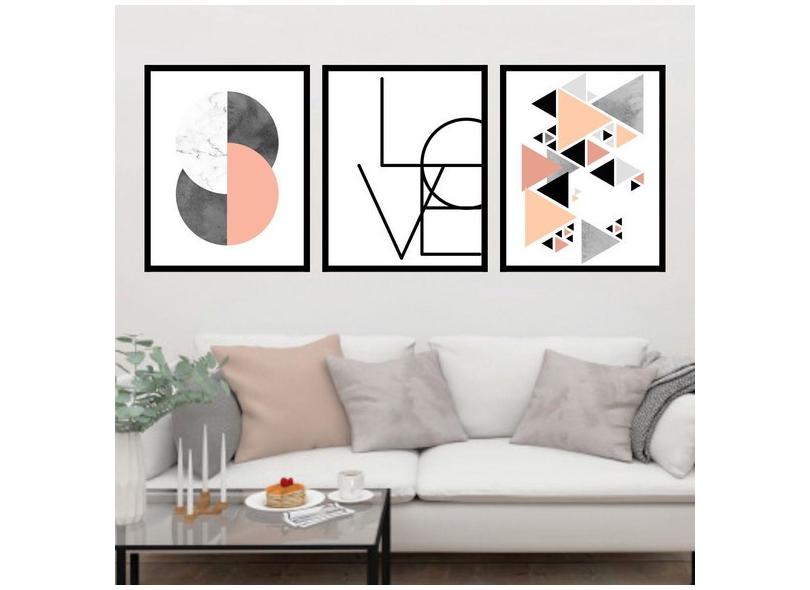 Kit 3 Quadros Decorativos Geométrico Love Triângulos 45x34cm