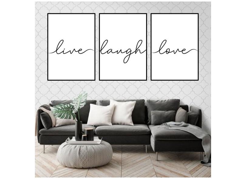Kit 3 Quadros Decorativos Live, Laugh, Love 45x34cm