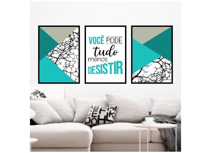 Kit 3 Quadros Decorativos Você Pode Tudo - Turquesa 45x34cm