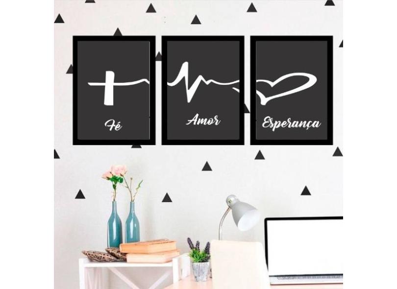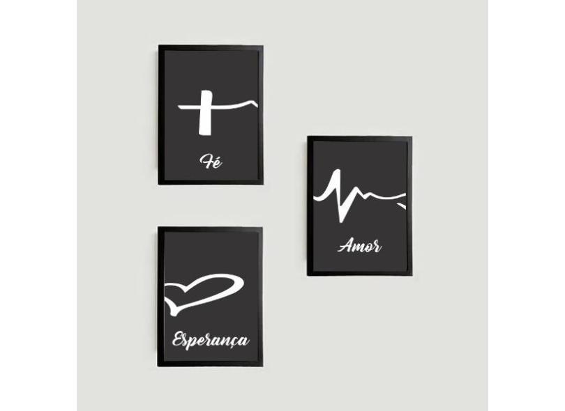 Kit 3 Quadros Fé, Amor, Esperança 45X34Cm