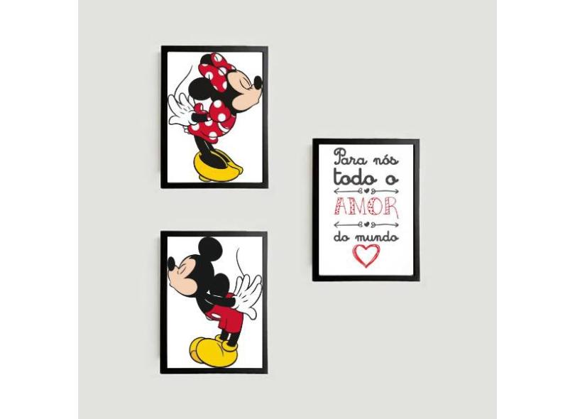 Kit 3 Quadros Mickey e Minnie Todo o Amor 45x34cm