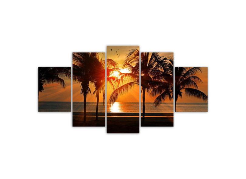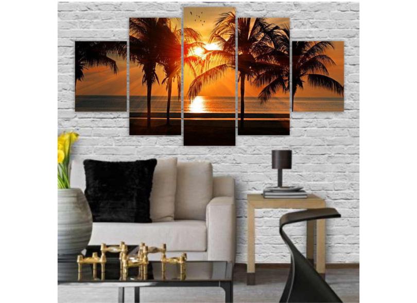 Kit Quadros Mosaico Pôr Do Sol Mar Sala Coqueiro Praia