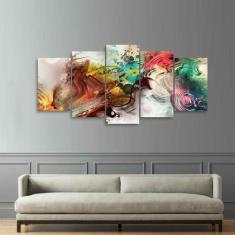Quadro Abstrato Mosaico 5 Peças Colorido Sala Quarto 125x60