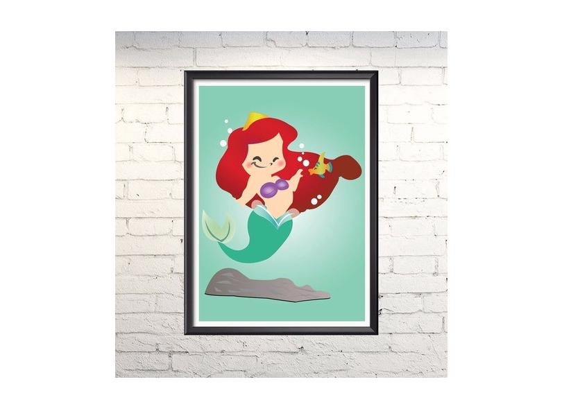 Quadro Ariel (pequena Sereia) Moldura Com Vidro 30x40cm