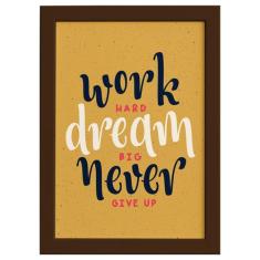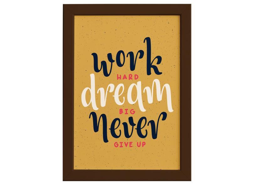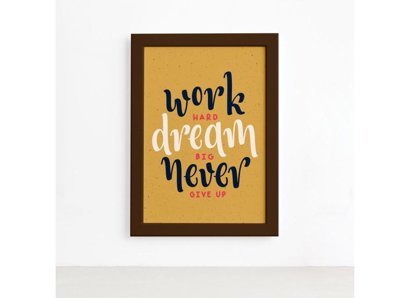 Quadro com Frase de Motivação Work Hard Moldura Marrom 22x32