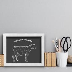 O menor preço encontrado no Brasil para Quadro Cozinha Churrasco Cortes de Boi 33x43cm Moldura atualmente é R$ 116,16.