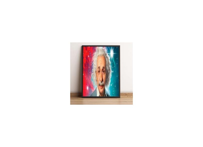 Quadro decorativo A4 Albert Einstein Fundo de Universo Desenho