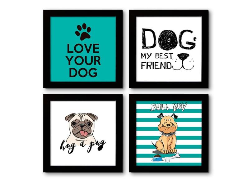 O menor preço encontrado no Brasil para Quadro Decorativo Composê 40X40 Cm Cachorros Dog atualmente é R$ 119,90.