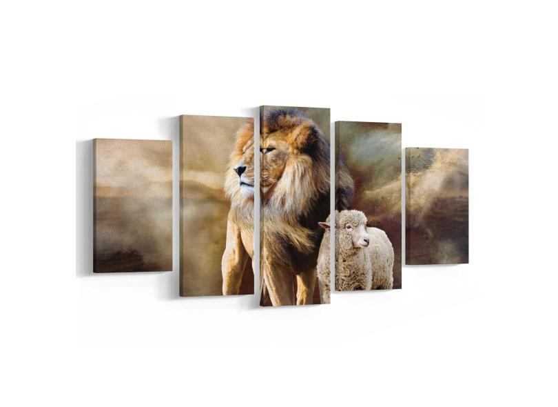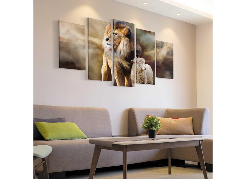 Quadro Decorativo Cordeiro E Leão Mosaico Em Canvas