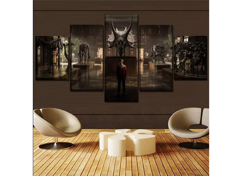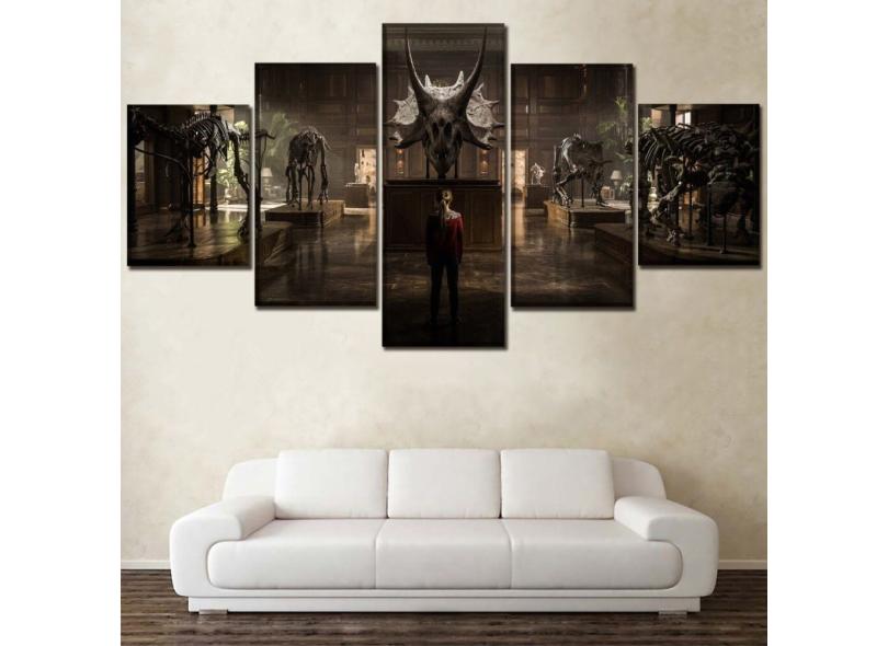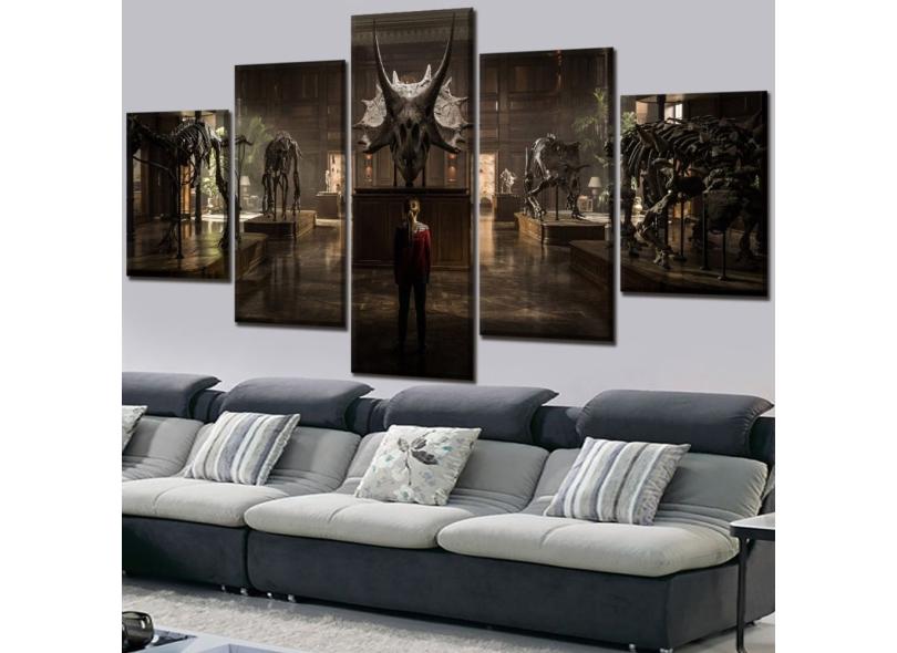 Quadro Decorativo Jurassic Park2 5 peças 130x65 cm em tecido