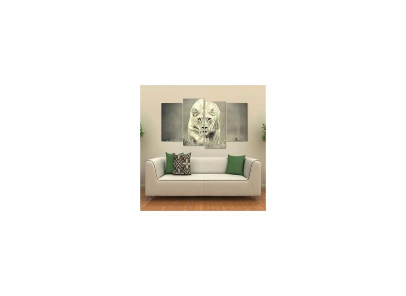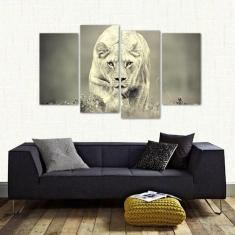 Quadro Decorativo Leoa Sala Em Tecido 4 Peças