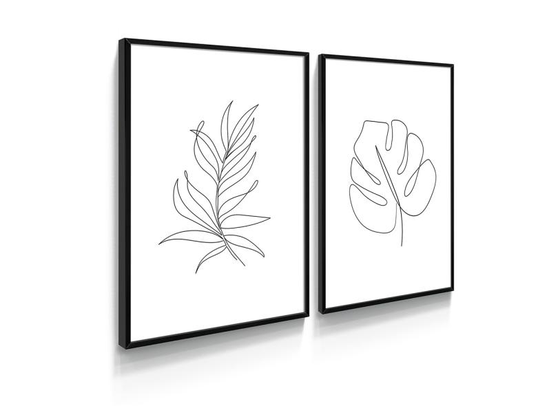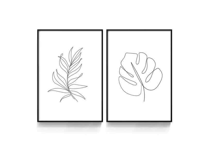 Quadro Decorativo Line Art Botânico Minamalista Folhas Sala Costela de Adão Linhas Moderno Recepção