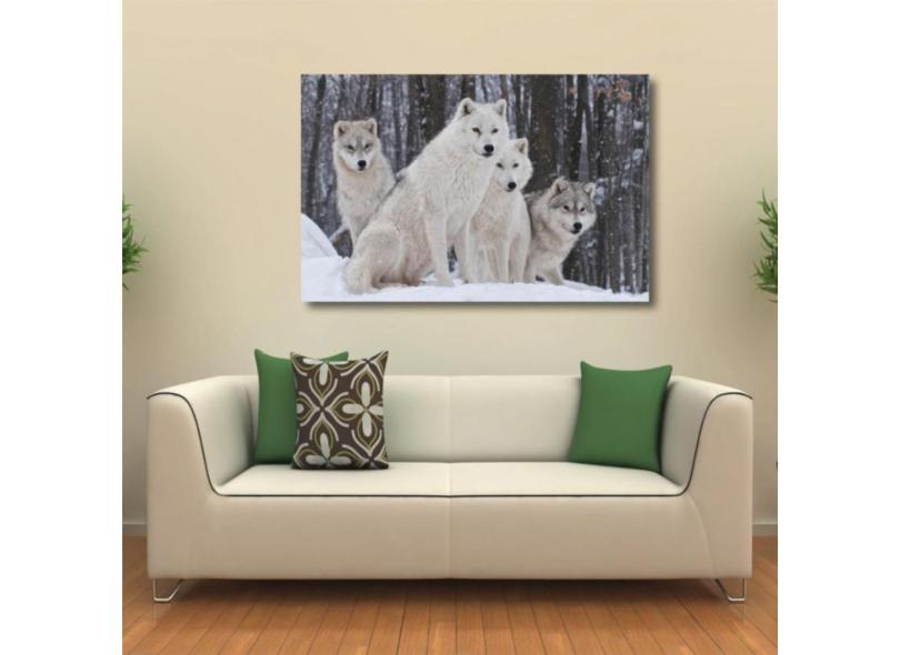 Quadro Decorativo Lobos Paisagem Com Tela Em Tecido