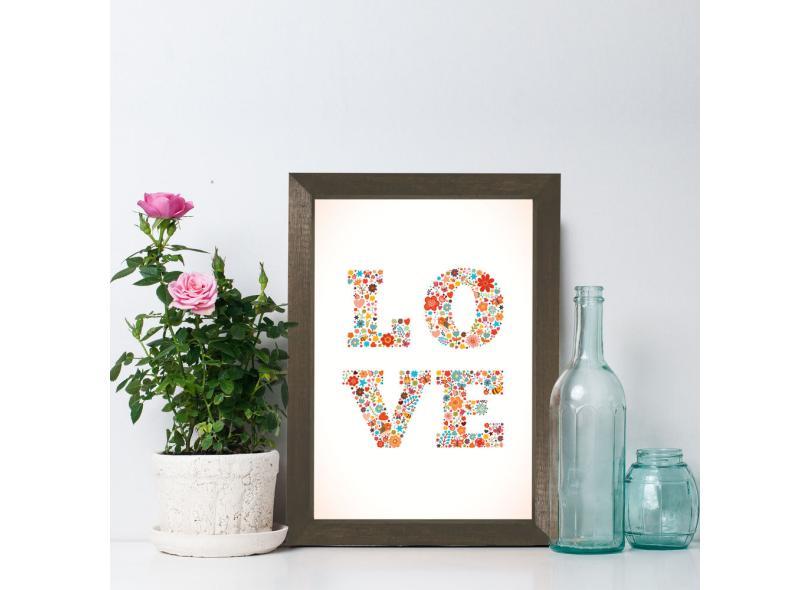 Quadro Decorativo Love Flores Moldura Marrom 22x32cm