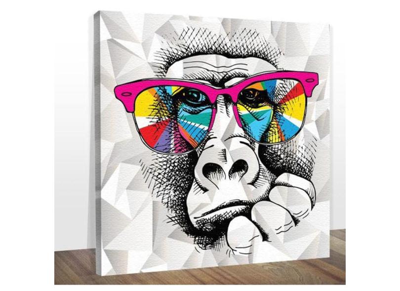 Quadro Decorativo Macaco Óculos Colorido Midiapoparte 60X60