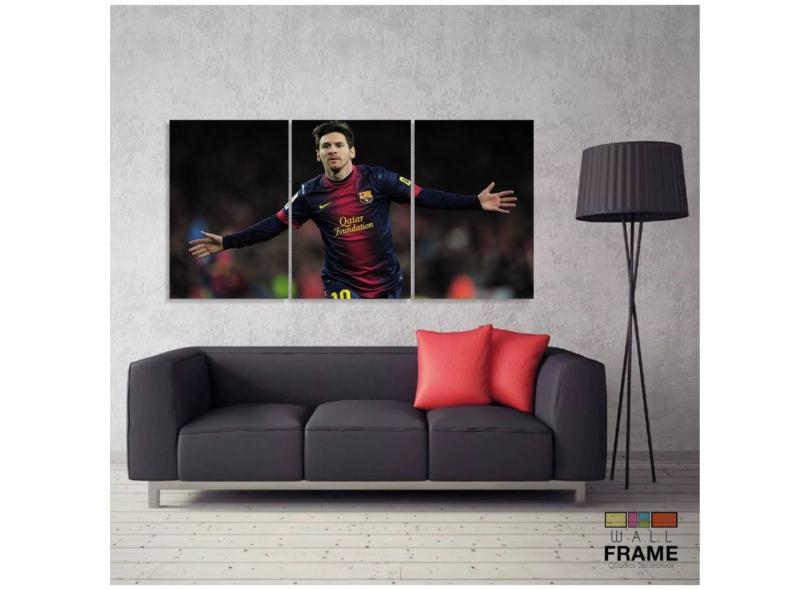 Quadro Decorativo Messi 3 peças 120x60 cm em tecido
