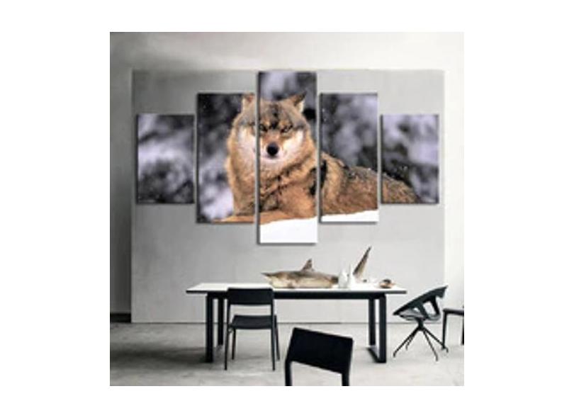 Quadro Decorativo Mosaico De Madeira 5 Peças Lobo Deitado