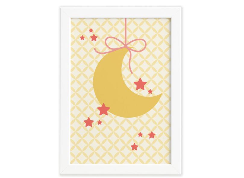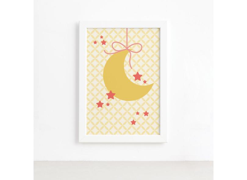 Quadro Decorativo para Quarto de Bebê Lua e Estrelas 22x32cm Moldura