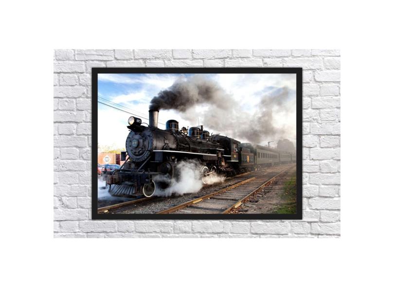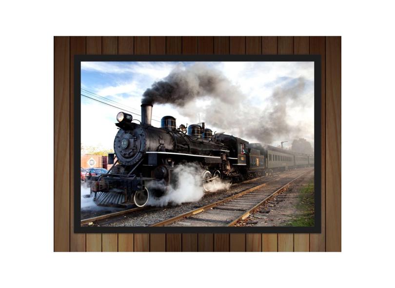 Quadro Decorativo Trem Locomotiva Com Moldura G01