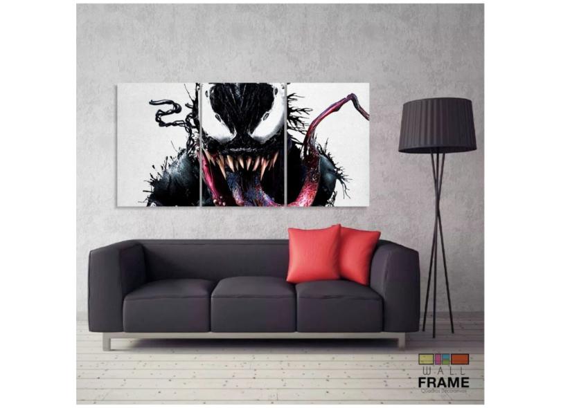 Quadro Decorativo Venom Marvel 3 Peças 120x60 Em Tecido