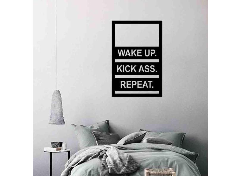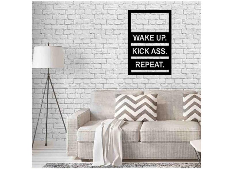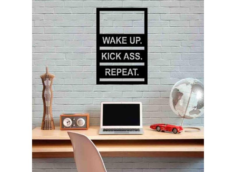 Quadro Decorativo Wake Up, Kick Ass, Repeat 3Mm Vazado - Mdf