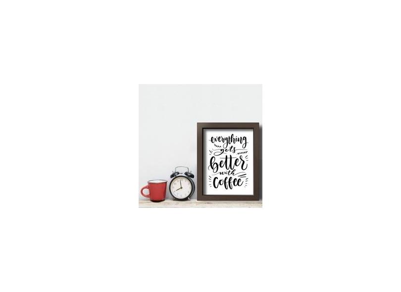 Quadro Frase Café Better With Coffee 22x32cm Moldura Marrom
