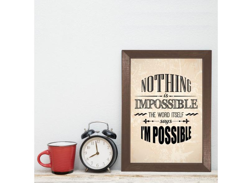 Quadro Frase Nothing is impossible 22x32cm Moldura Marrom