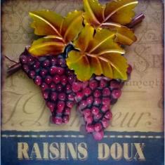 Quadro Madeira 3d Raisens Doux Uvas em aluminio 36x38x3 cm