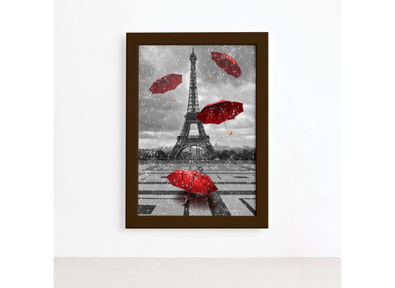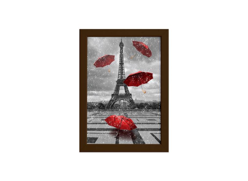 Quadro Paris Torre Eiffel Guarda Chuvas Moldura Marrom 22x32