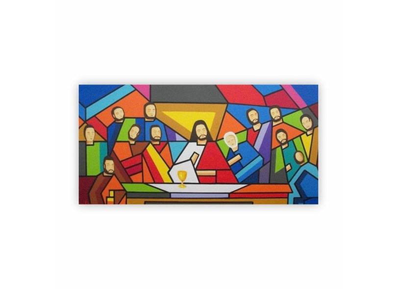 Quadro Religião Santa Ceia Colorida Moderna 80X40 Em Canvas