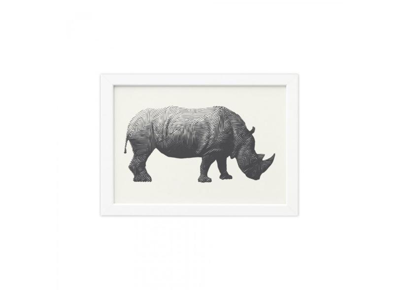 Quadro Safari Geométrico Rinoceronte Moldura 33x43cm