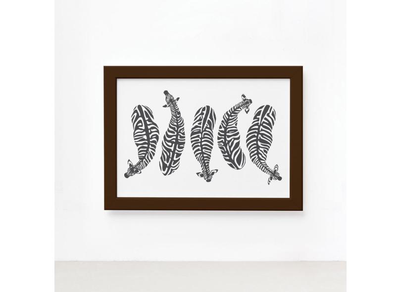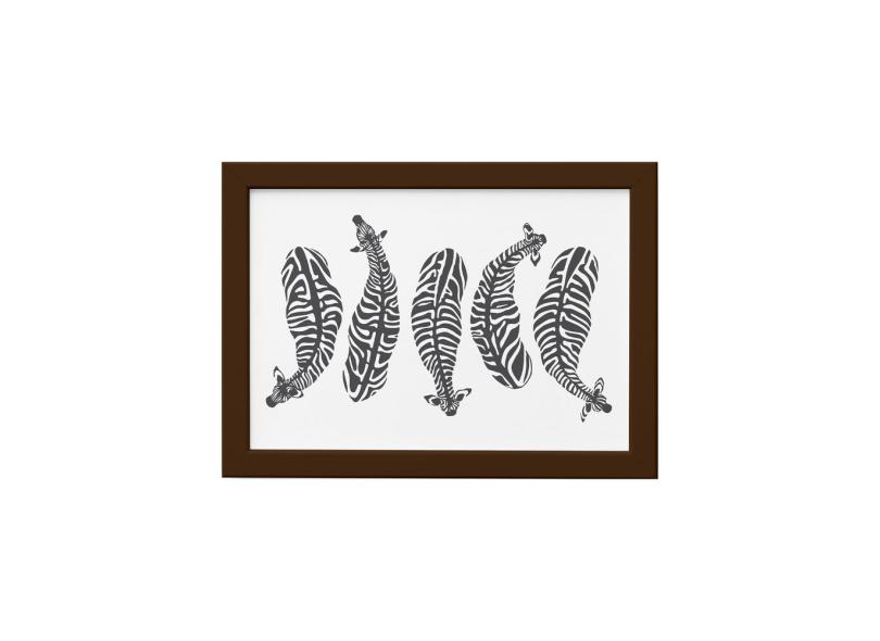Quadro Safari Geométrico Zebra Moldura Marrom 33x43cm