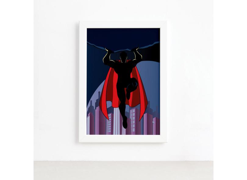 Quadro Super Heróis Geek Superman Rocha Moldura 33x43