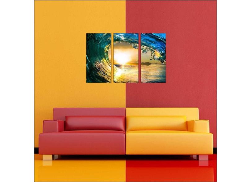Quadro Surf Surfista Onda Mar Decorações Com 3 Peças Salas
