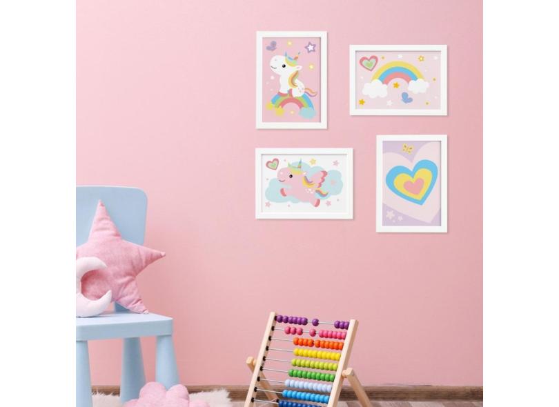 Quadros para Quarto Unicornio 22x32cm Moldura 4un