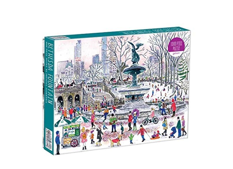 Galison Michael Storrings Bethesda Fountain Jigsaw Puzzle, 1000 Peças, 27" x 20`` - Quebra-cabeça de arte ilustrada com cena de um Marco central