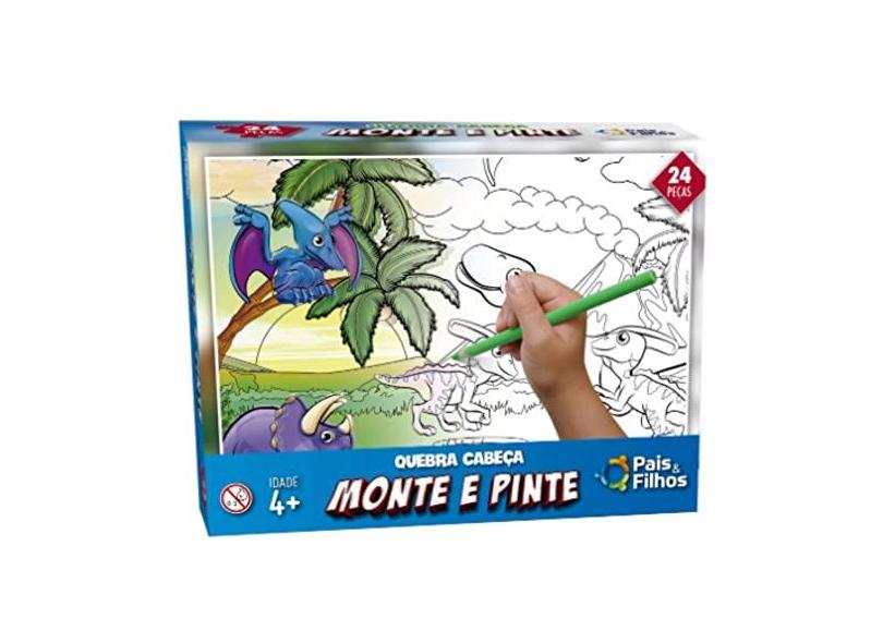 Jogo Quebra Cabeça Monte E Pinte Desenho Dinossauro 24 peças