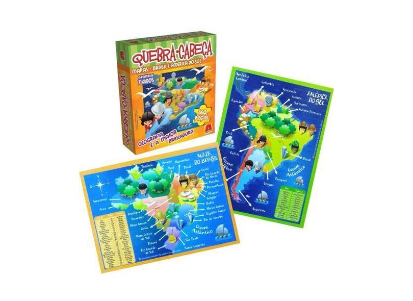 Kit 2 Quebra Cabeça Mapa Brasil América Do Sul Algazarra