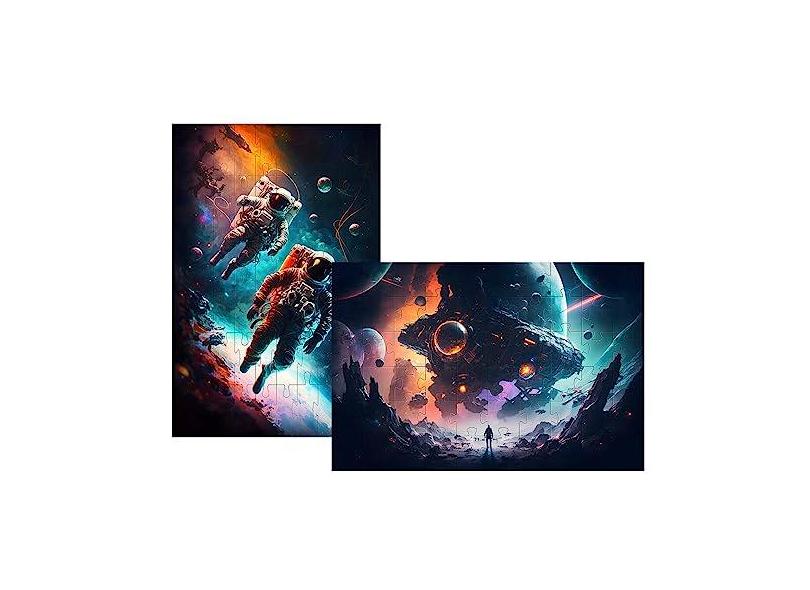 Kit 2 Quebra-cabeças Cognitivos Arte Espacial de 90 peças