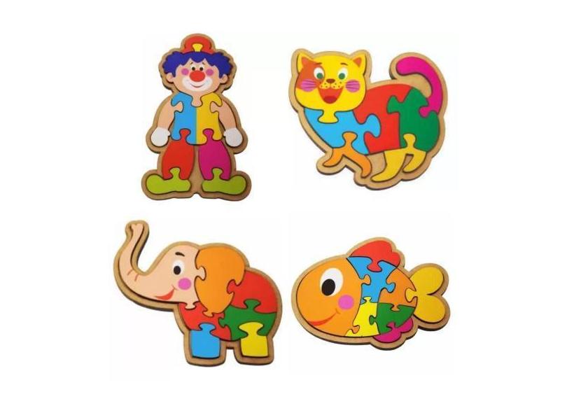 Kit Com 4 Quebra Cabeças Elefante + Palhaço + Gato + Peixe - Brinque E