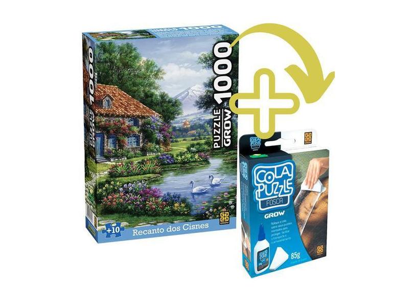 Kit Quebra Cabeça Recanto Dos Cisnes 1000P + Cola Fosca Grow