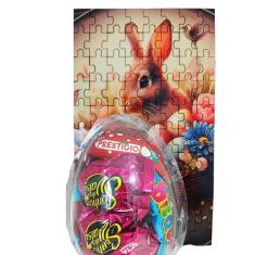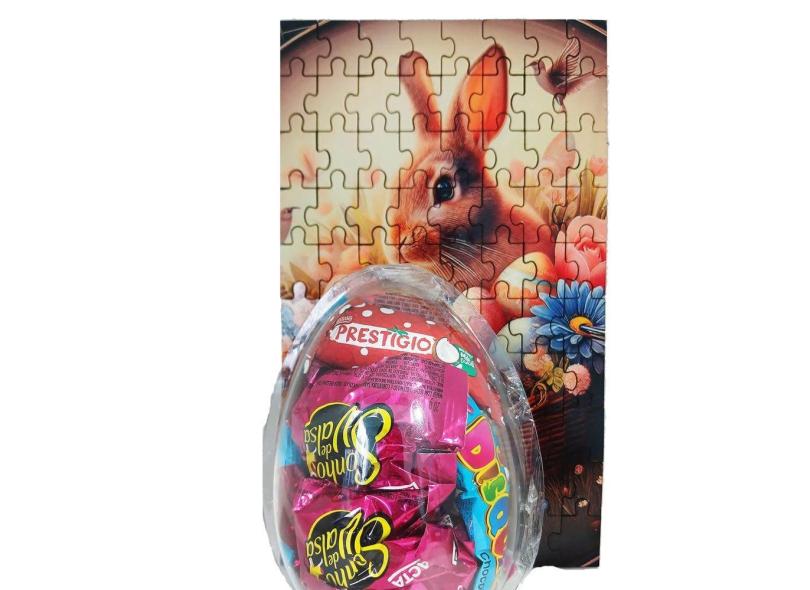 Presente de Páscoa Chocolates e Guloseimas + Quebra-cabeça Pascoa 80 peças em mdf